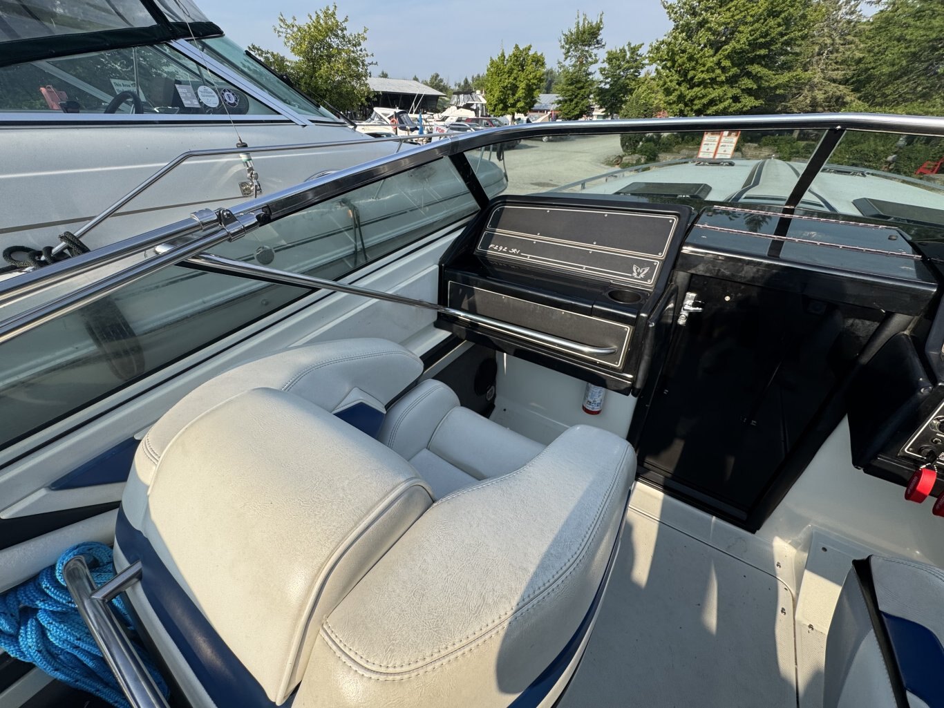 This 1989 Formula SR1 is more than a boat, it is pure fun on the water with a story to match. Originally custom designed for and purchased by a NASCAR team, it still carries the original factory build sheet onboard. Always stored on its trailer and never left in the water, it is in exceptional condition inside and out.