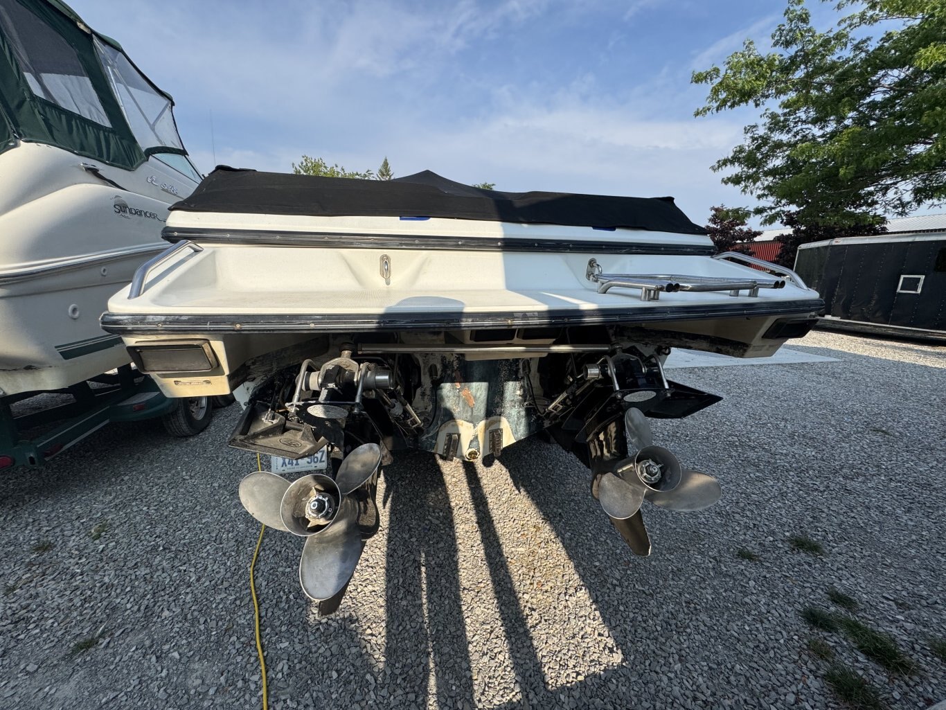 Twin 454 Mercury Mag engines with under 850 hours deliver the speed and power this boat was built for. It is all original, mechanically strong, and loaded with fresh upgrades including a brand new camper top, tonneau cover, mooring cover, Garmin navigation system, and a wicked American Bass stereo that will keep the party going. The hull was waxed and polished in July 2025 so it turns heads before you even fire up the engines. Inside, you will find a spacious cabin with a galley, head, queen size bed, and shore power, perfect for overnight adventures. The matching tri-axle trailer makes it easy to take this beauty anywhere.This is your chance to own a fast, fun, and rare piece of NASCAR and marine history. Recent 2025 survey available.